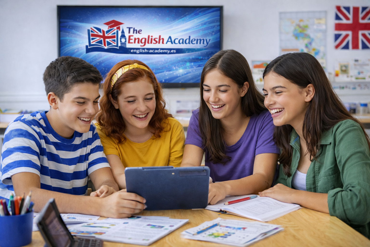 Pero eso no significa que las clases sean serias o monótonas. Sabemos que los adolescentes aprenden mejor cuando están motivados, implicados y disfrutando del proceso. Por eso combinamos una progresión clara con actividades dinámicas, trabajo en equipo, conversación y situaciones reales que hacen el aprendizaje más atractivo y significativo.